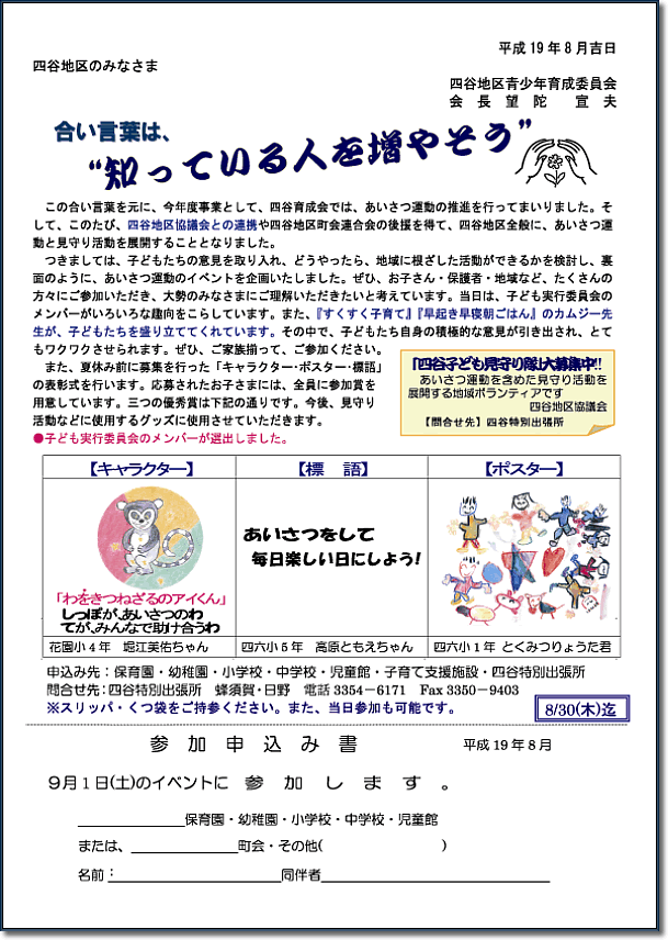 カムジー先生が9月1日(土)「知っている人を増やそう」あいさつ運動